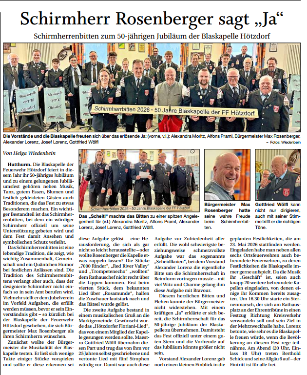 Jubiläumsgottdienst zum 50 Jährigen Fest der Blaskapelle Musikalischer Frühschoppen mit der Blaskapelle FF Hötzdorf und ihren Jungmusiker*innen im Gasthaus Wagner Hutthurm 10:00 Uhr Jubiläumskirche zum 50-jährigen Jubiläum der Blaskapelle…